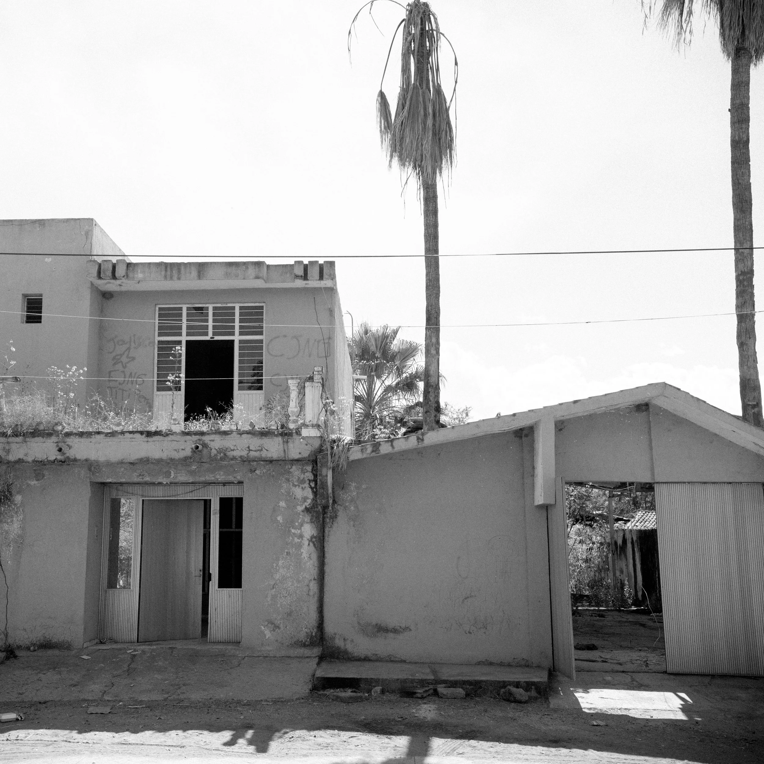 Exterior view of a house taken over by the Jalisco New Generation Cartel in El Aguaje, Michoacán. The abandoned home reflects the forced displacement of entire communities amid escalating cartel violence. In this region, houses and streets have been overtaken by armed groups, leaving behind a landscape marked by fear, silence, and the absence of those who once lived there.
